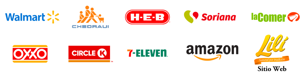 Muchos puntos de distribución. Diversos comercios, como Walmart, Chedraui, CircleK, Oxxo, Seven Eleven, HEB, La Comer, Soriana y Amazon.